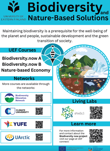 Our team was present with staff members from the Center for Continuous Learning and the Department of Biological and Environmental Sciences, offering information about our new biodiversity related courses and activities within international networks, including COIL@UArctic. Our biodiversity courses (Biodiversity.now A, Biodiversity.now B, Nature-Based Economy, Current Nature Policy) were promoted through posters (QR codes) and the distribution of leaflets and flower seeds.