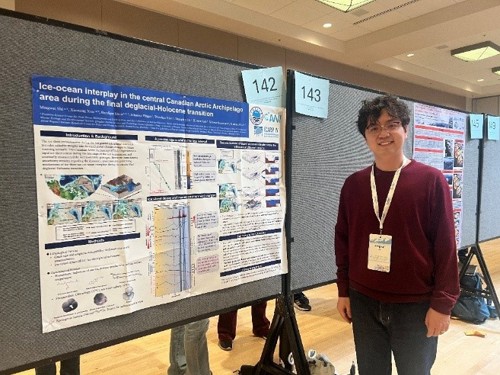 During the conference, I presented a poster titled "Ice-ocean interplay in the central Canadian Arctic Archipelago area during the final deglacial-Holocene transition." This research investigates the interactions between ice sheets and ocean systems in the Canadian Arctic Archipelago during a critical climatic transition. By integrating marine geology and geochemistry, the study reveals the coupling between ice sheet retreat, ocean circulation, and climate change, providing insights into natural climate variability and its impacts on ice-ocean dynamics.​