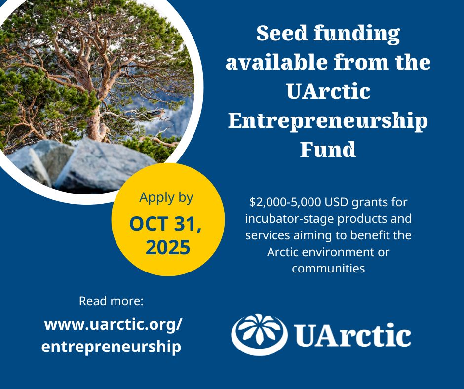The UArctic Entrepreneurship Fund is now open for applications! This unique initiative supports early-stage ideas that aim to strengthen Arctic communities and improve the Arctic environment through practical, community-driven innovation. Deadline to apply is October 31, 2025.